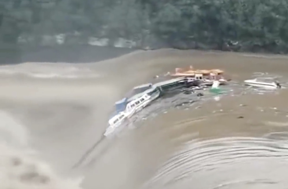 ▼船隻被洪水沖走後淹沒。(圖/翻攝CCTV)