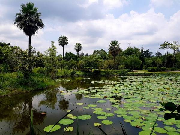 位於大溪區月眉里的山豬湖生態親水園區,共有7個水池,其中雲荷池、雲天池種有荷花,夏季開花,花朵大型、雅致且芳香而有觀賞性。市府水務局去年在園區進行小黃薊馬的病蟲害防治有成,今年荷花花況明顯增加,在園區雲荷池就有葉片壯觀的大賀蓮,滿園美景令人心矌神怡。