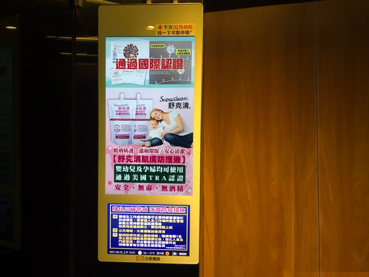 ▲《舒克清》投放東森分眾傳媒的電梯廣告,將產品深入社區推廣。(圖/東森分眾傳媒提供)