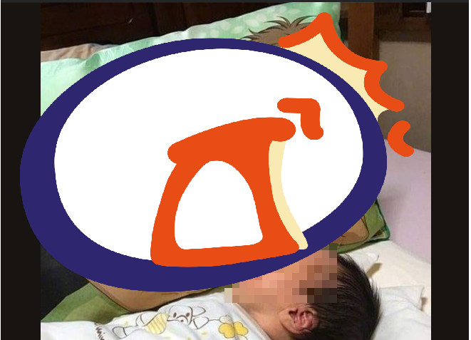 這名家長在臉書社團「爆笑公社2」貼出一張照片,附文寫道,「自從有了它,我孩子不再哭和鬧。」照片中只見嬰兒旁邊有一個印有動漫帥哥的枕頭,枕頭上的帥哥身穿黑色V領T恤,隱約露出肌肉線條,深邃的大眼和挺鼻極為迷人。