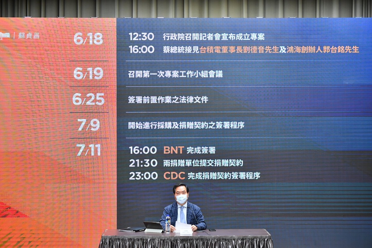 ▲BNT原廠疫苗捐贈專案說明記者會。(圖/行政院提供)