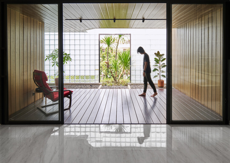 東西兩側的外牆甚至整面替換成玻璃磚,同時,為避免人們在家中被東西側外立面的光直接曝曬,設計團隊也加裝了具備「散熱」功能的前、後露台,一來確保室內仍可享受到充足的日照,也不會過分受熱。
