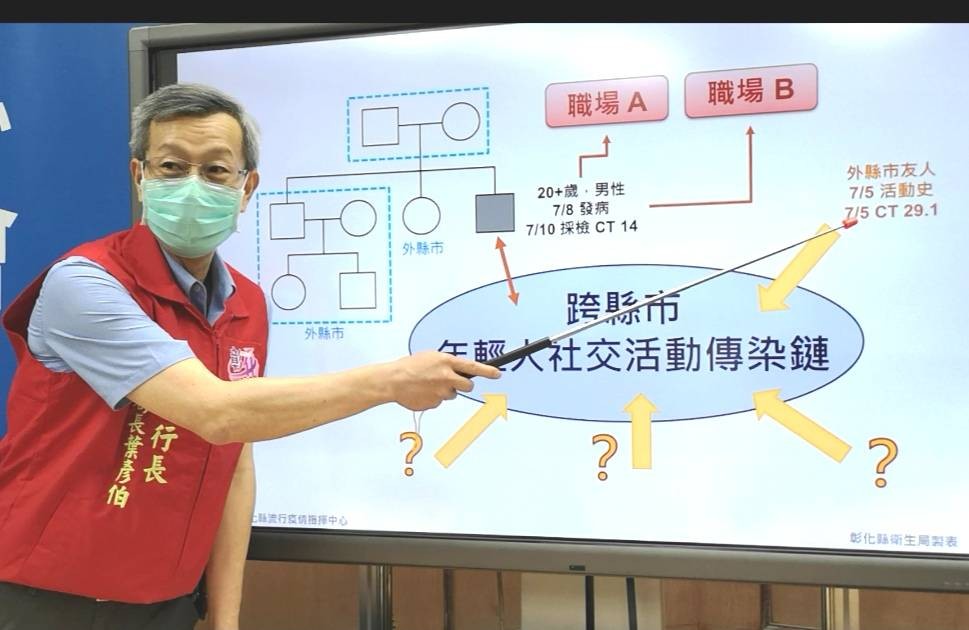 彰化縣連續3天零確診!彰化海鮮小開(25歲)確診Ct值14,疫調有進一步的進展,台中市衛生局昨天證實新增家教男(30歲)及鄰居確診,家教男7月5日與小開有開趴,屬於中部三縣市「年輕人特殊社交圈」,目前得知與6月份南投2確診男有接觸,匡列10人篩檢中,彰化3名年輕人一採全為陰性。