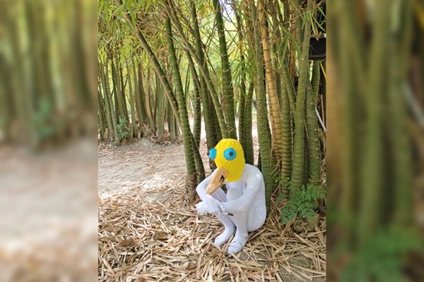 依據照片內容,徐聖評扮演的「小雞人」蹲在竹林裡,手圍成一圈放在膝蓋上,表現出失落的模樣。不少網友在下方惡搞留言,「你去板車跟桃車看看,說不定有出路」、「是不是沒戴口罩被趕出去了」、「小雞人遭當代美術館方撤出,被迫露宿街頭,辛酸畫面流出。」