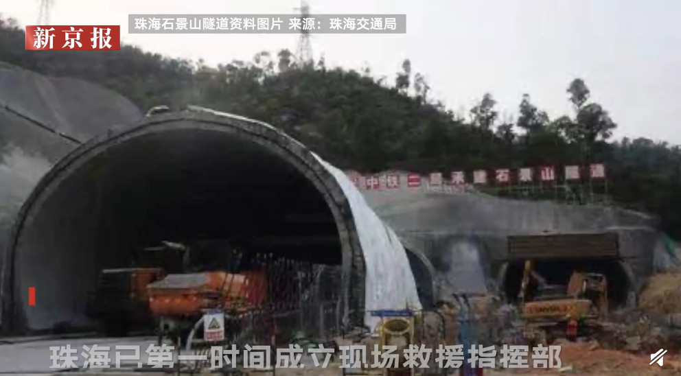 ▲廣東珠海一隧道工程發生意外,14名工人受困。(圖/翻攝新京報官微)