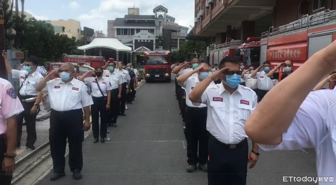 ▲勇消陳志帆靈車繞行分隊,戰友列隊敬禮 。(圖/記者鄧木卿攝)