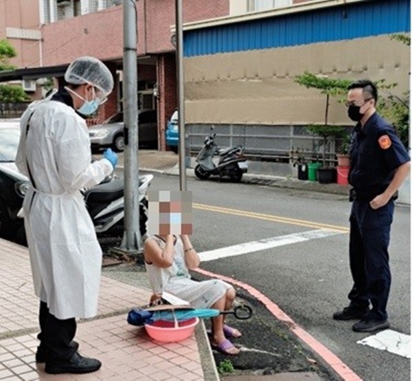 台中市大里區71歲林姓婦人日前清晨跌倒在路邊,頭部及地上都有血跡,眼神渙散、表情呆滯,警方獲報到場趕緊通知救護人員送醫,正值疫情三級警戒,林婦竟然沒有戴口罩,但警方並未開單,原因是林婦曾被大火燒掉右耳,無法正常佩戴口罩。