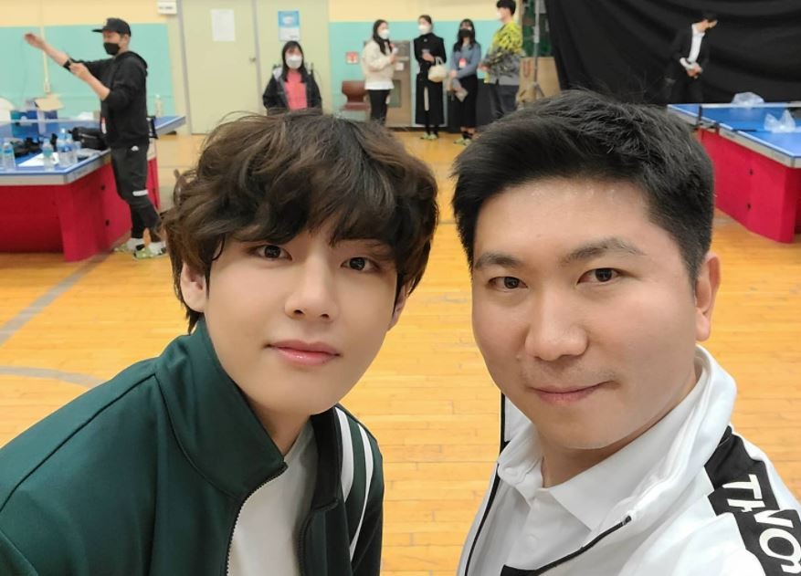 ▲柳承敏(右)在成田機場確診,左為防彈少年團成員V。(圖/柳承敏臉書)