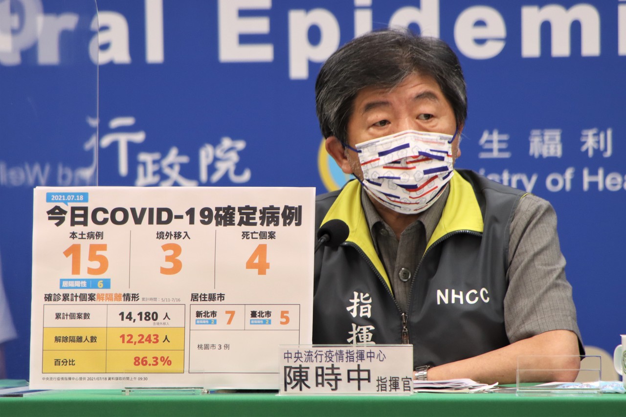 陳時中表示,在三級警戒後,全民都非常配合防疫,不過現在有一些例外情況,若戶外工作者沒有車子,在戶外通風良好處可以飲食;微解封開車出遊,若同車者均為同住家人,也可以直接飲食。但非同住家人共同出遊的話,還是要佩戴口罩,飲食也要輪流,一次只能一人脫口罩。