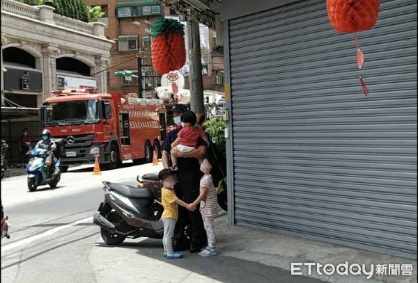 ▲警消人員自火場救出3幼童。(圖/記者楊熾興翻攝)