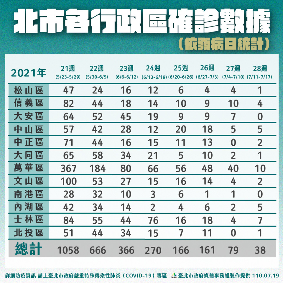 中央流行疫情指揮中心19日公布新增15例本土,以新北市11例為最高,其次為桃園市3例、台北市1例。台北市長柯文哲在防疫記者會公布,今天新增案例在中正區。對於北市僅新增1例,他也呼籲市民不要太樂觀、太輕敵。