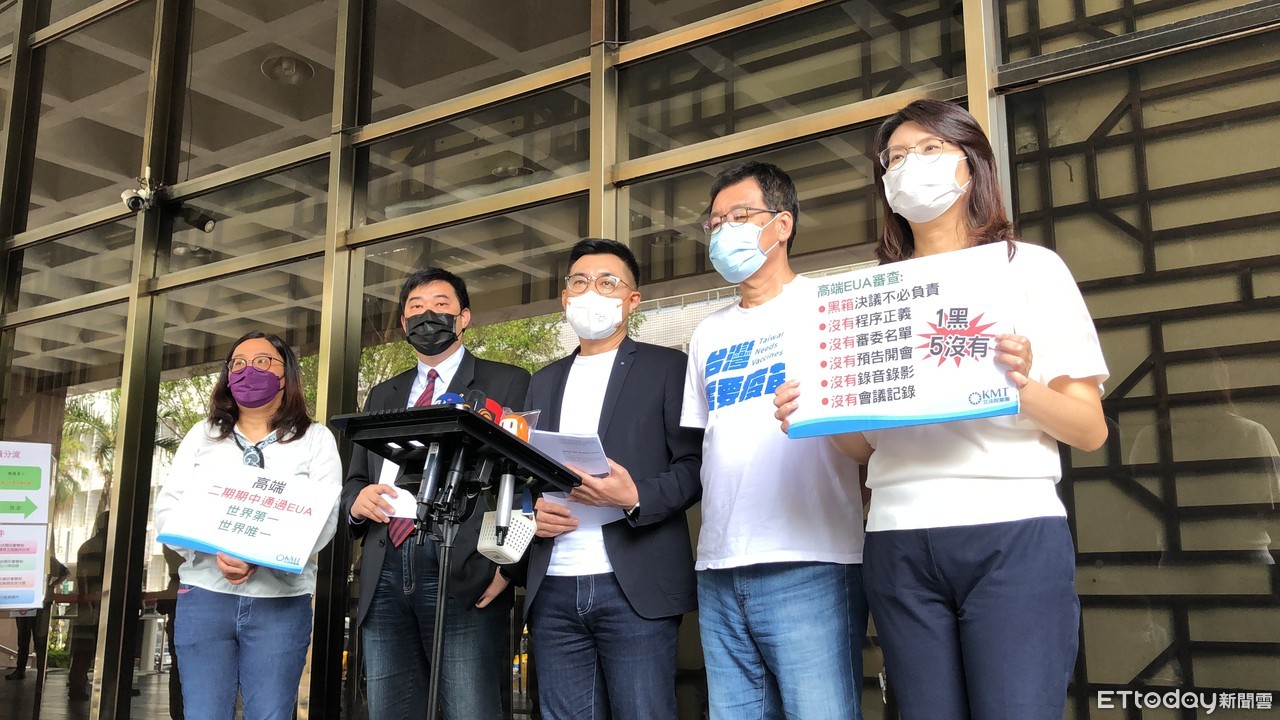 國民黨主席江啟臣表示,國產疫苗連二期試驗有沒有完成都不確定,且以美國為例,他們通過EUA全程錄影,無論參與人員是誰、意見為何,全部都公開透明,但衛福部公布的資料中,不僅沒有錄影,也不知那些是委員,正反意見更是通通沒有,先前更傳出審核專家換了一半,痛批19日的EUA不僅標準是全球最低,過程更黑箱草率,「蔡英文做到了川普也辦不到的事」。