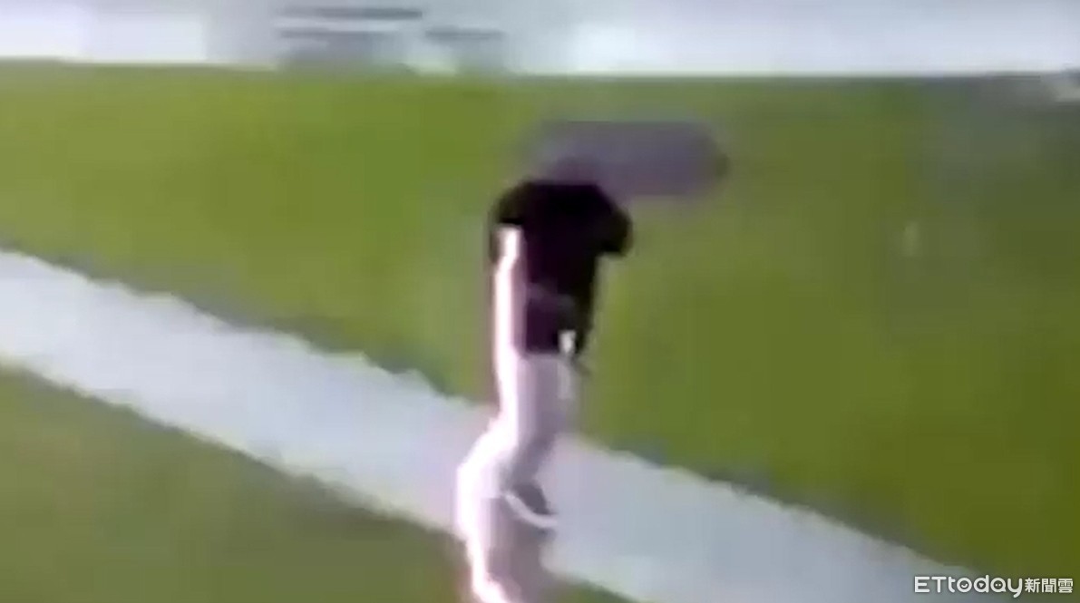 ▲撐傘民眾遭雷擊瞬間。(圖/新北消防發爾麵授權提供)