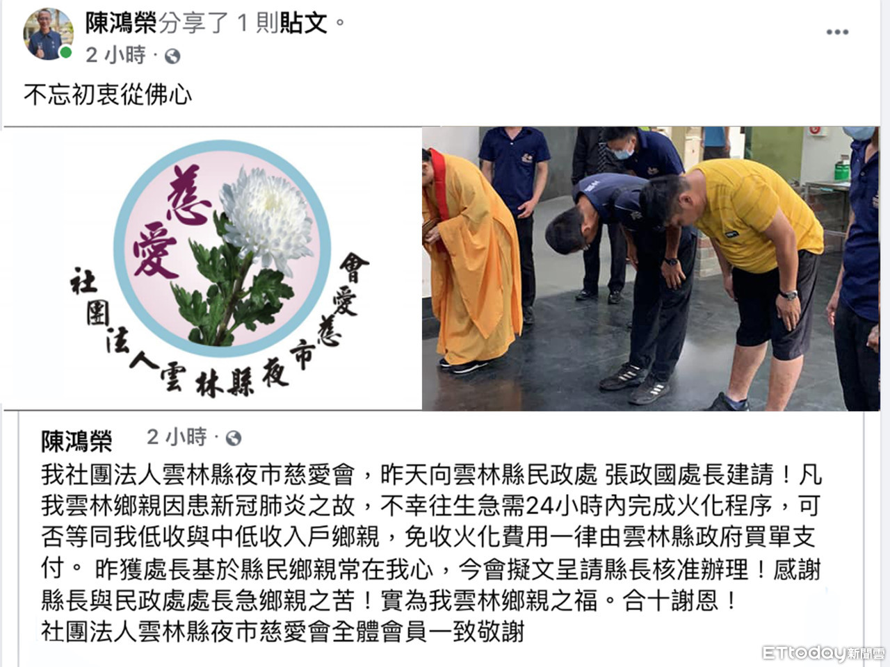 ▲許阿公確診病逝時家屬都住院治療,無人陪最後一程,由雲林縣夜市慈愛會協助火化並處理全部喪葬費用。(圖/記者蔡佩旻翻攝)