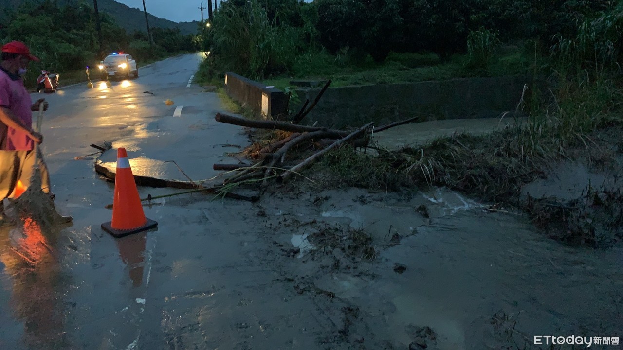 受颱風外圍環流影響,台南山區出現強降雨,東山區嶺南里南99線11K坪子坪橋,20日晚上6時30分許,因雨勢過大造成水勢暴漲至路面,台南市警白河分局東原所,據報緊急派出警網到場,冒雨兩側封閉警示,以免發生人車視線不佳掉落河內意外,維護夜間往來人車行車安全。