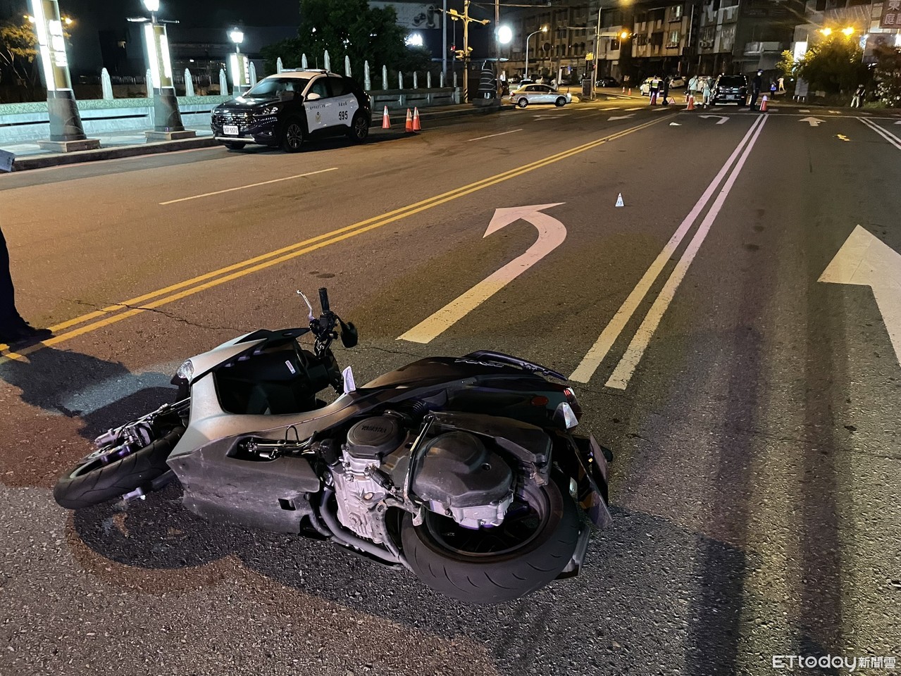 ▲機車橫倒在地,張姓騎士重傷不治。(圖/民眾提供)