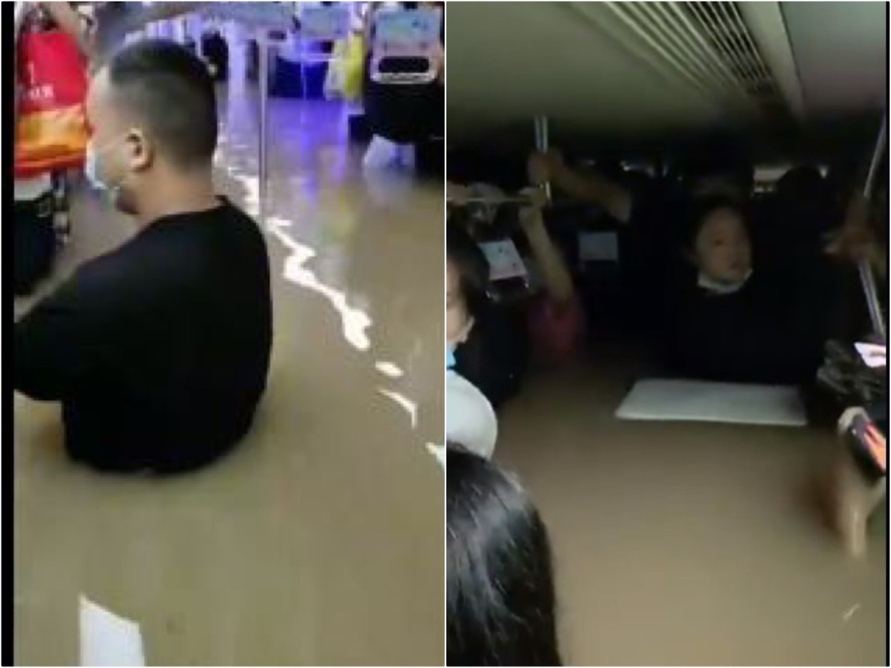 綜合陸媒報導,河南鄭州昨天下午4、5點時出現罕見暴雨,1小時降雨量就達到201.9公釐,已破歷史極值,不僅房屋被淹沒,大量雨水倒灌進地鐵站,水深達大腿高度,多個地鐵車廂內積水及腰,乘客只能站在車廂中等待救援。