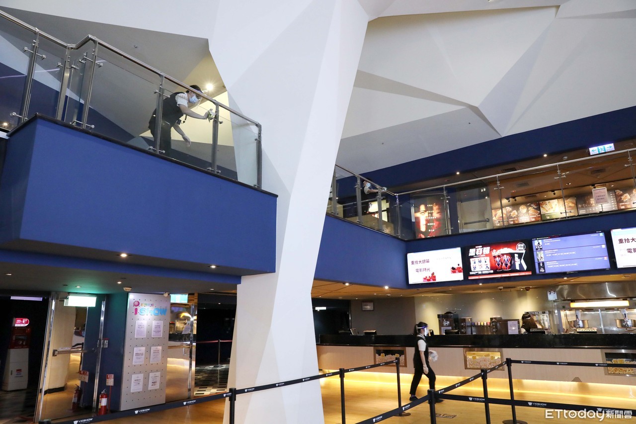 ▲招名威認為有4類人仍不適合到電影院。圖為影廳工作人員開映前清消環境。(圖/記者屠惠剛攝)