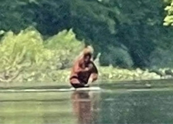 艾迪表示,他的表兄弟當時正在卡斯河划皮艇,卻突然看見一個神祕的身影,「我不確定這是什麼,但已經寄給一些人看。有些人說那是大腳怪帶著小寶寶,也有人說那是大腳怪叼著一隻鹿」。
