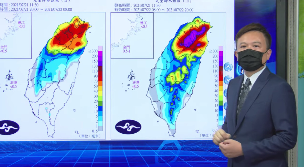 周五、六是颱風最接近的時間,中部以北、東北部、南部山區有局部大雨或豪雨,其他地區也會有雨勢,周日颱風遠離朝向中國移動,屆時受到西南風影響,中南部將再迎來降雨,北部、東部也有局部雨勢。