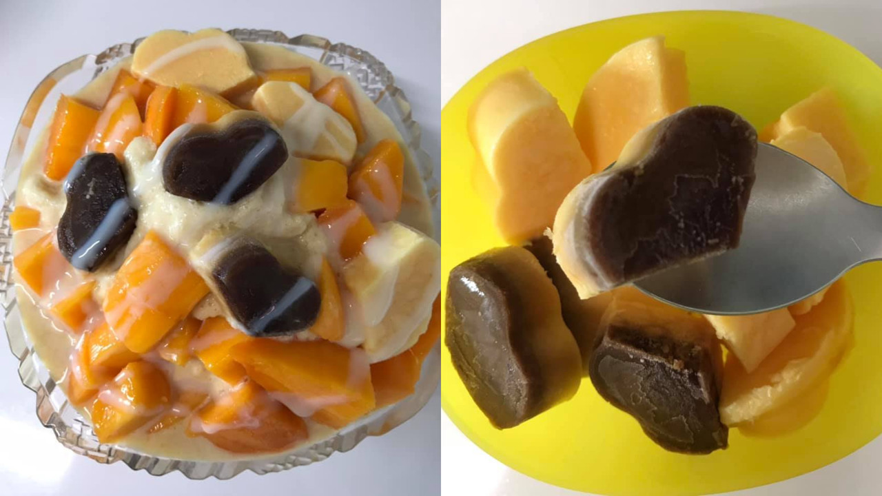 ▲切成愛心形狀的統一布丁和芒果丁,擺在以統一布丁和牛奶打成的雪花冰上,就變成大人小孩都愛吃的布丁芒果雪花冰。(圖/翻攝自臉書社團「「我愛全聯-好物老實説」)
