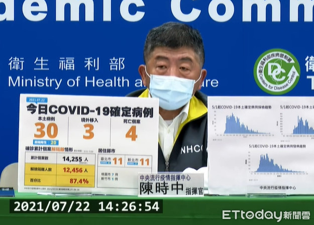 ▲今天新增30例本土確診。(圖/翻攝自疾管署直播)