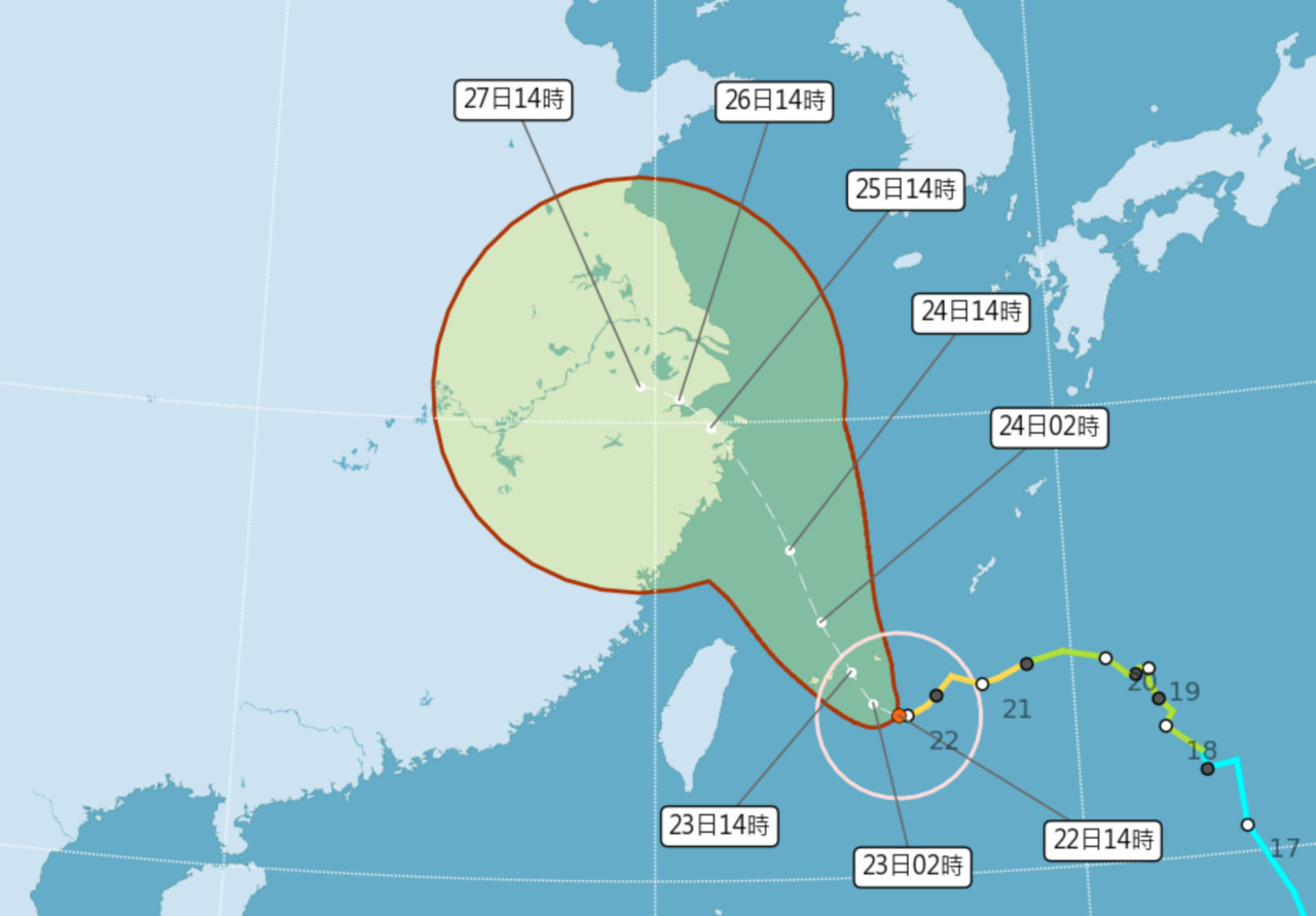 ▲烟花颱風持續靠近台灣。(圖/氣象局)