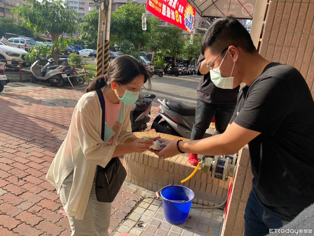 21日下午4點多,趁著高雄市放晴,張家維找來同樣也是自創服飾品牌的服飾公司21歲老闆楊崇立兩個人,來到這棟大樓發放200坪的液王消毒液,主委看到這個情況真的很感動,還雙手合十的說聲感謝!24歲的生技公司老闆張家維說:「會選在這裡,主要是因為鄰居,因為自己的公司跟楊崇立的工廠都是在大樓附近,所以當時就知道他們被隔離,為了要謝謝他們的犧牲,才會選擇這裡發送,而且他們的感染源根據衛生局的認定,就是電梯裡的按鍵所造成,這表示清消非常重要,提供給他們一人一罐,隨身帶著,只要記得在按鍵之前噴一下,就能避免不必要的感染」。