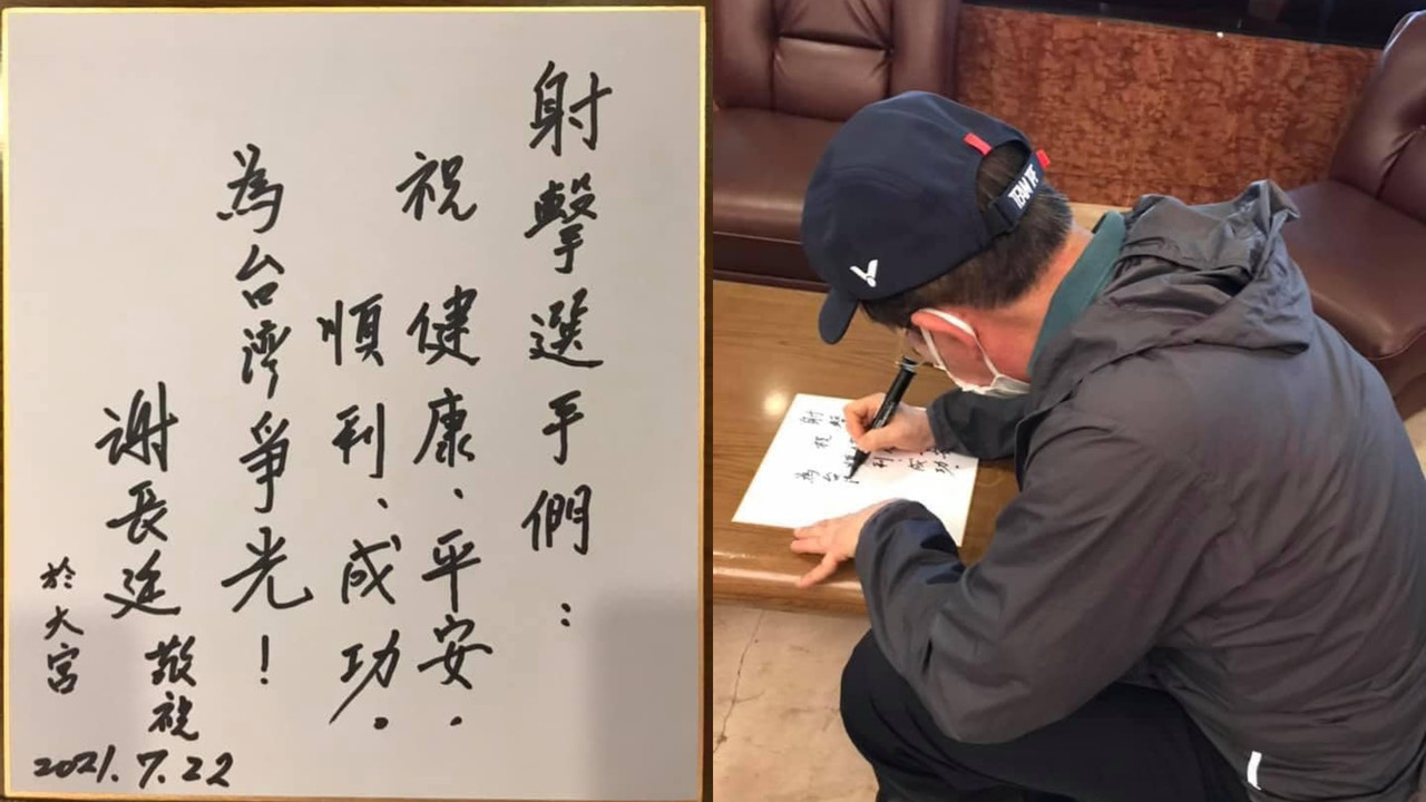 ▲謝長廷親筆寫下對東奧選手的祝福。(圖/謝長廷)