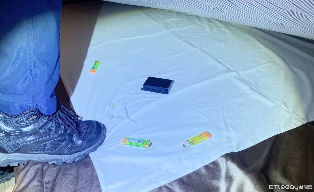 ▲針對桃園市政府衛生局公布特殊交友圈累計40人確診案,桃園警分局針對轄區賓館擴大臨檢,在床墊下查出毒品證物。(圖/記者沈繼昌翻攝)