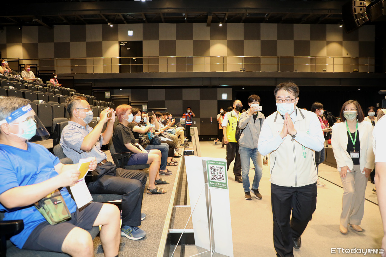 ▲台南特色施打站台南美術館二館開打,市長黃偉哲特地前往視察,關心民眾施打疫苗情況。(圖/記者林悅翻攝,下同)
