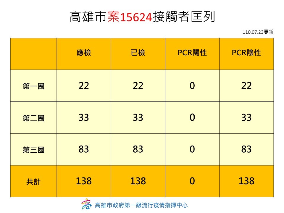 高雄市連續21天零確診止步!市府23日召開防疫記者會,公布1例確診病例,個案是一名40多歲男子,全國案號15624,為南北移動造成的感染,經北部確診友人通知,自行快篩呈陽性。個案共計匡列138人,經快篩、PCR檢測後,均為陰性反應。