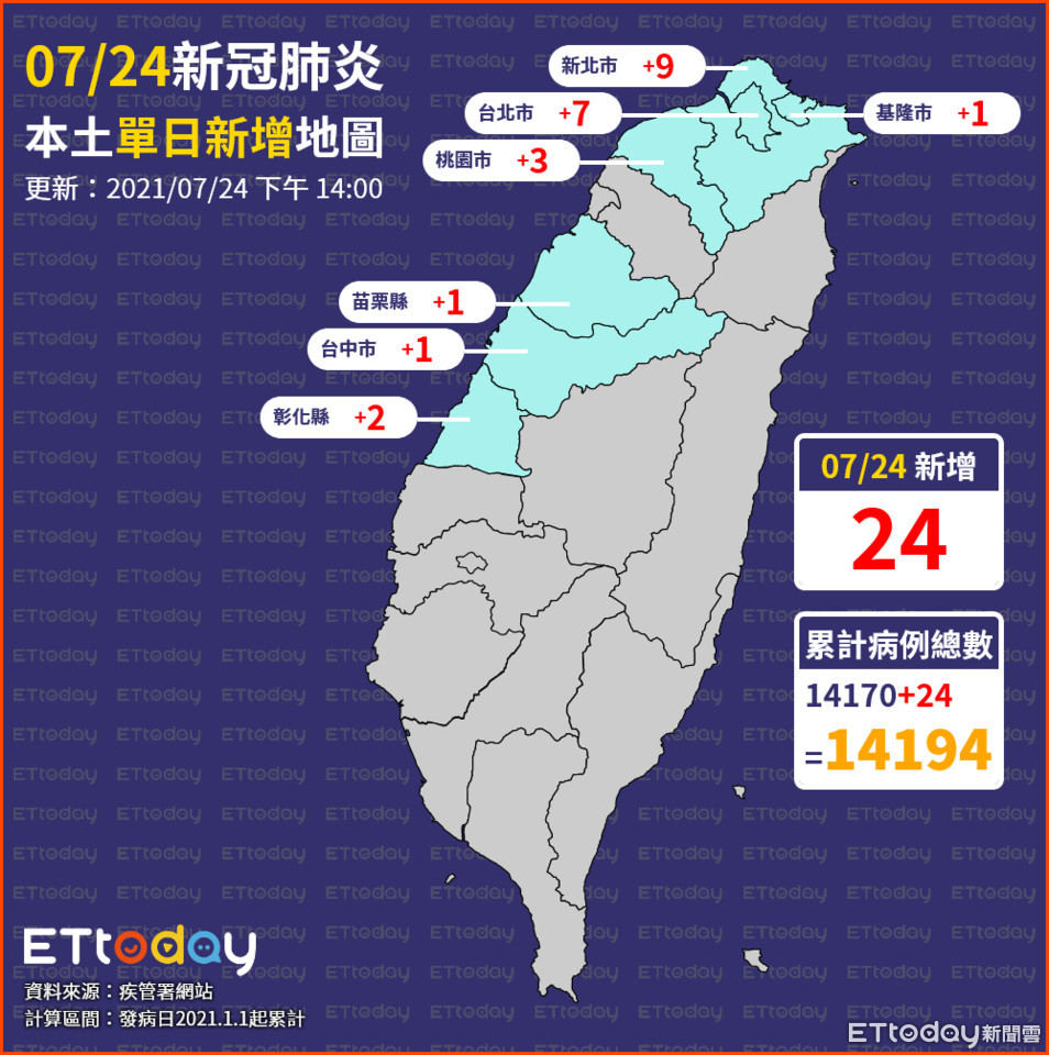 ▲0724本土單日新增地圖(圖/ETtoday製)