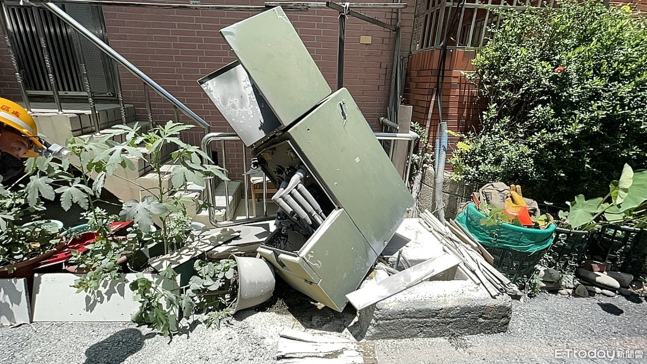 ▲▼左營區文自路505巷內一座變電箱遭垃圾車撞及毀損,造成附近住戶停電。(圖/記者吳世龍攝)