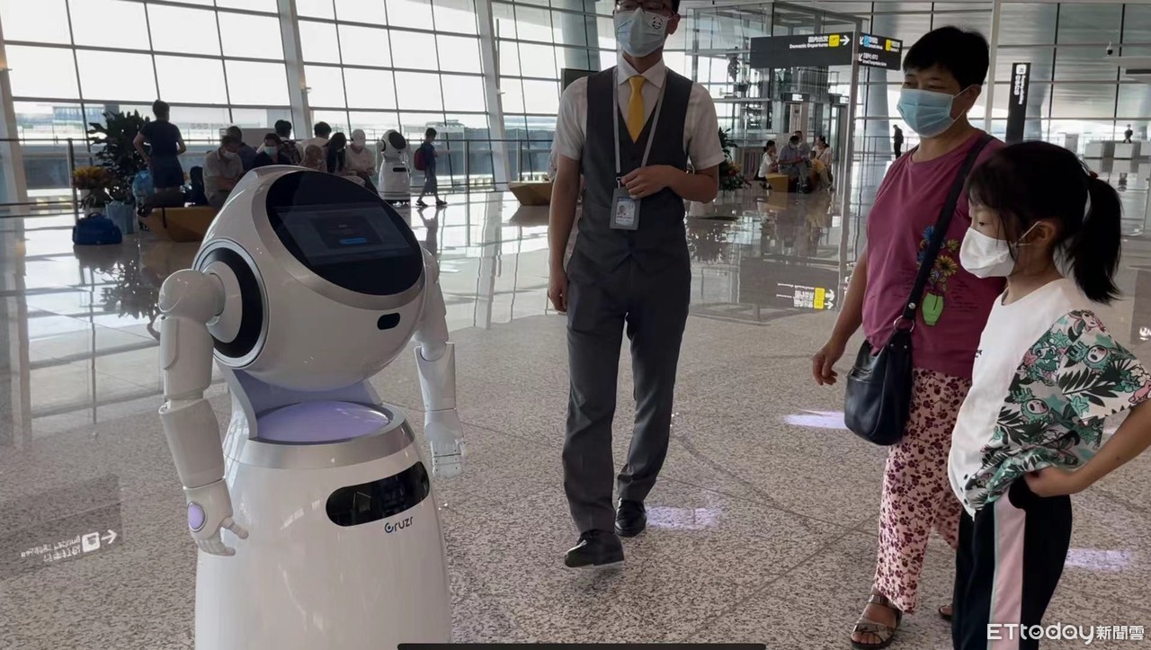 ▲天府機場專屬「未來感」風景,AI機器人巡場服務 。(圖/記者任以芳攝)