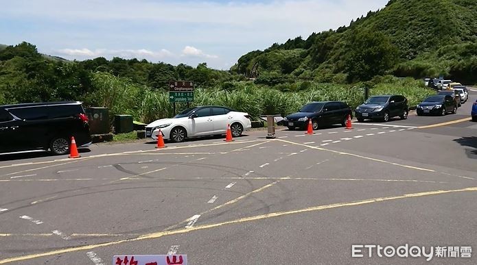 而陽明山擎天崗則是湧現車潮,不少悶壞的民眾上山透透氣,不過根據目前的防疫規定,停車位在50輛小客車以上之停車場,須進行總量40%上限管制,現場也擺出「停車位已滿」的告示牌,必須排隊入場,等待的車輛至少有15輛以上。
