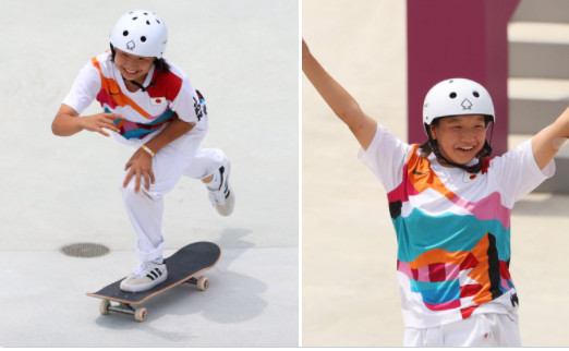 日本隊於昨(25)日由22歲選手堀米雄在男子街式賽中摘金,今天13歲的西矢椛以15.26分奪金、16歲的中山楓奈則以14.49奪銅,讓日本隊在滑板項目中已包辦2金1銅的佳績。