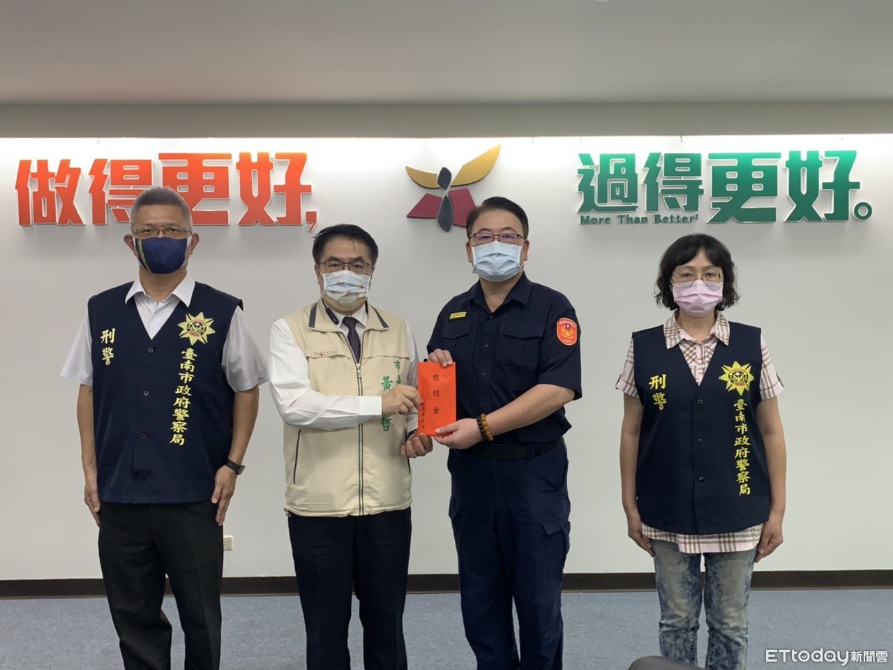 ▲台南市警局連續偵辦3起重大刑案,市長黃偉哲利用治安會報之機會,公開表揚頒發破案慰問金予各單位有功人員。(圖/記者林悅翻攝,下同)