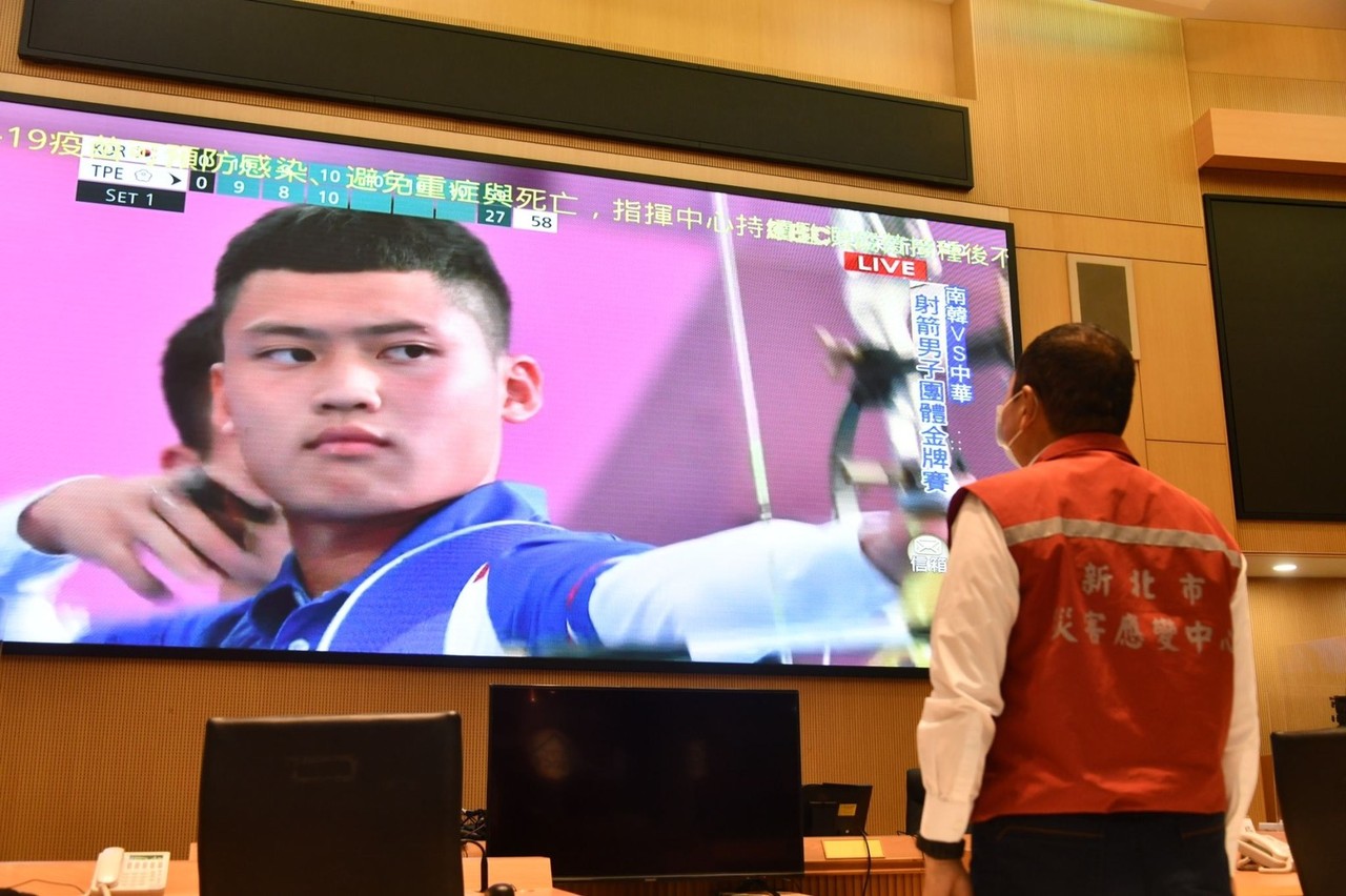 ▲侯友宜透過轉播全程觀看比賽。(圖/新北市府提供)