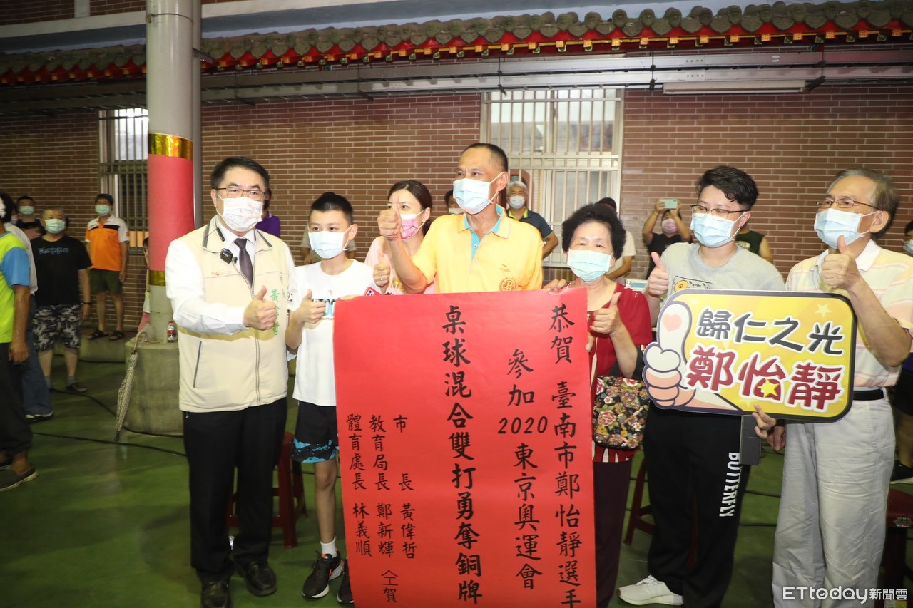 ▲台南市長黃偉哲恭喜鄭怡靜、林昀儒拿下東奧桌球混雙銅牌,向鄭父等致謝。(圖/記者林悅翻攝,下同)