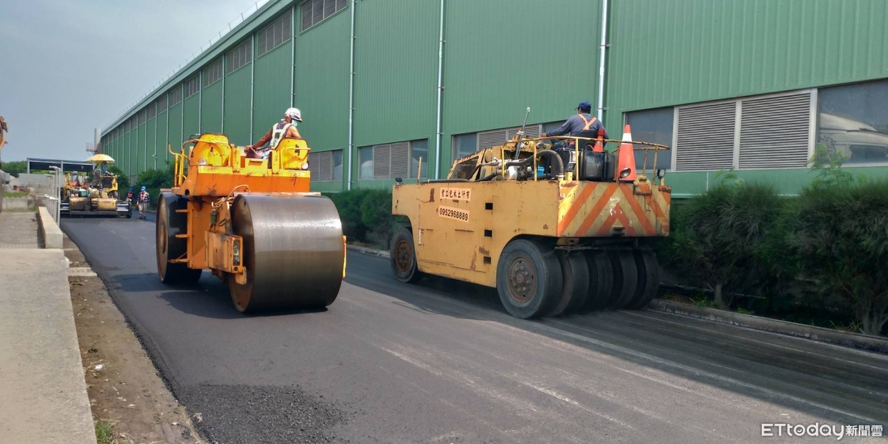 ▲台南市積極推動「資源循環零廢棄」,產、官、學合作在城西底渣處理廠,舖設一條長465公尺、寬8公尺之再生粒料示範道路。(圖/記者林悅翻攝,下同)