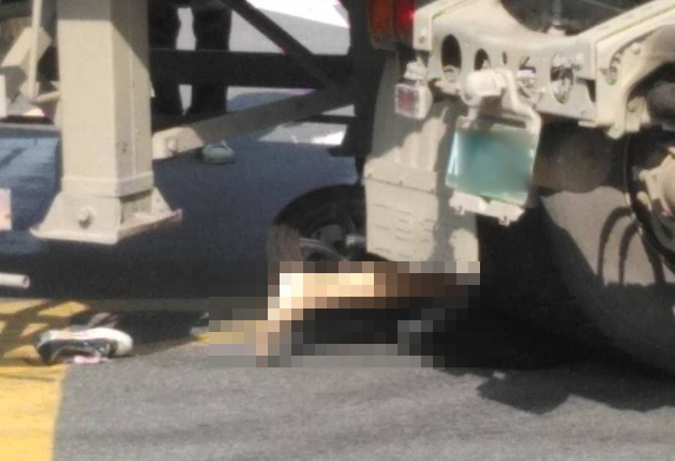 ▲女子被捲入砂石車底。(圖/翻攝自記者爆料網)