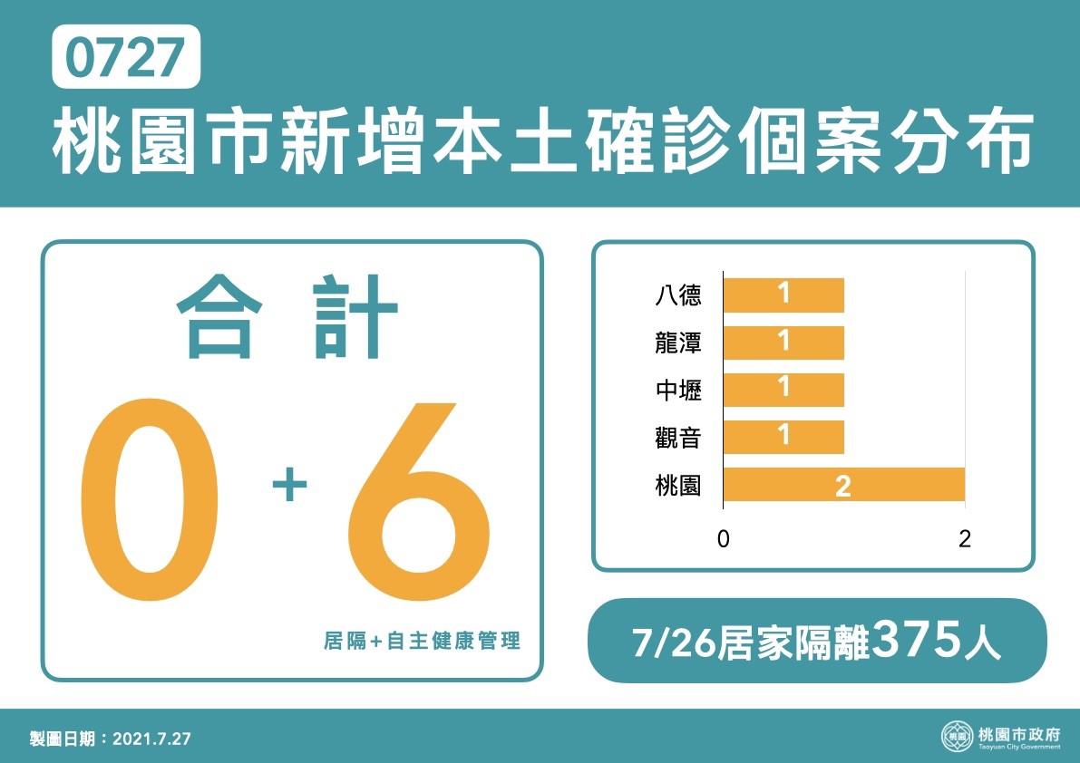 鄭文燦指出,桃園今日6名確診個案年齡為30多歲至40多歲,6人均為確診者接觸者(案15693、15694、15695、15696、15700、15707)。