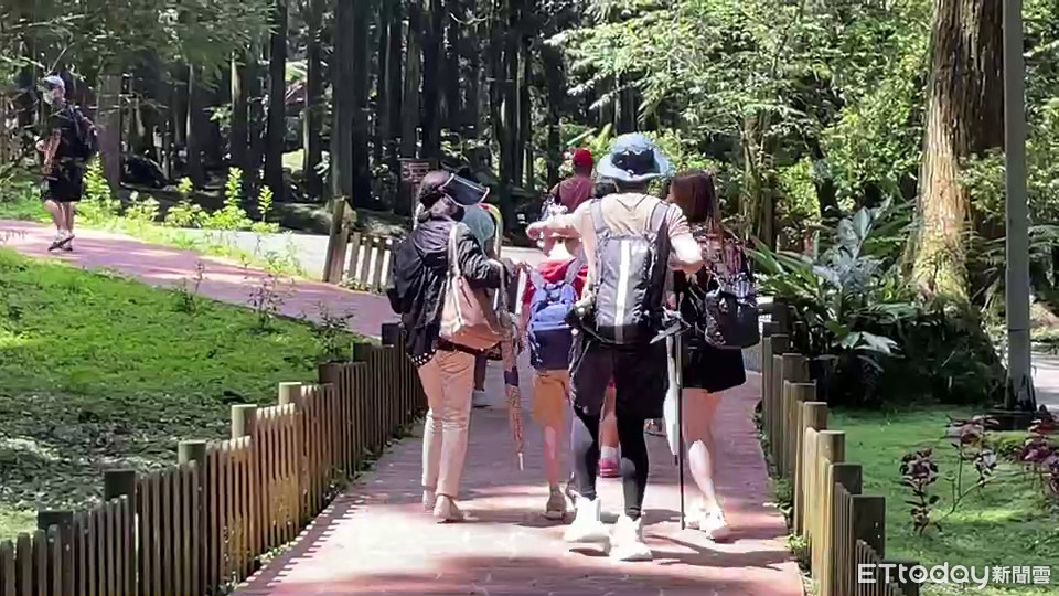 防疫三級警戒執行2個月後,今天終於降至二級,南投熱門景點溪頭自然教育園區一早就湧現久違的人潮和車潮,整個上午約有1000人造訪,新鮮空氣和翠綠山林讓遊客興奮直呼:「好舒服好快樂!」但因遊客增加,不時可發現一群人走得太近的群聚情形,園方也呼籲民眾保持社交距離、配合落實防疫措施。