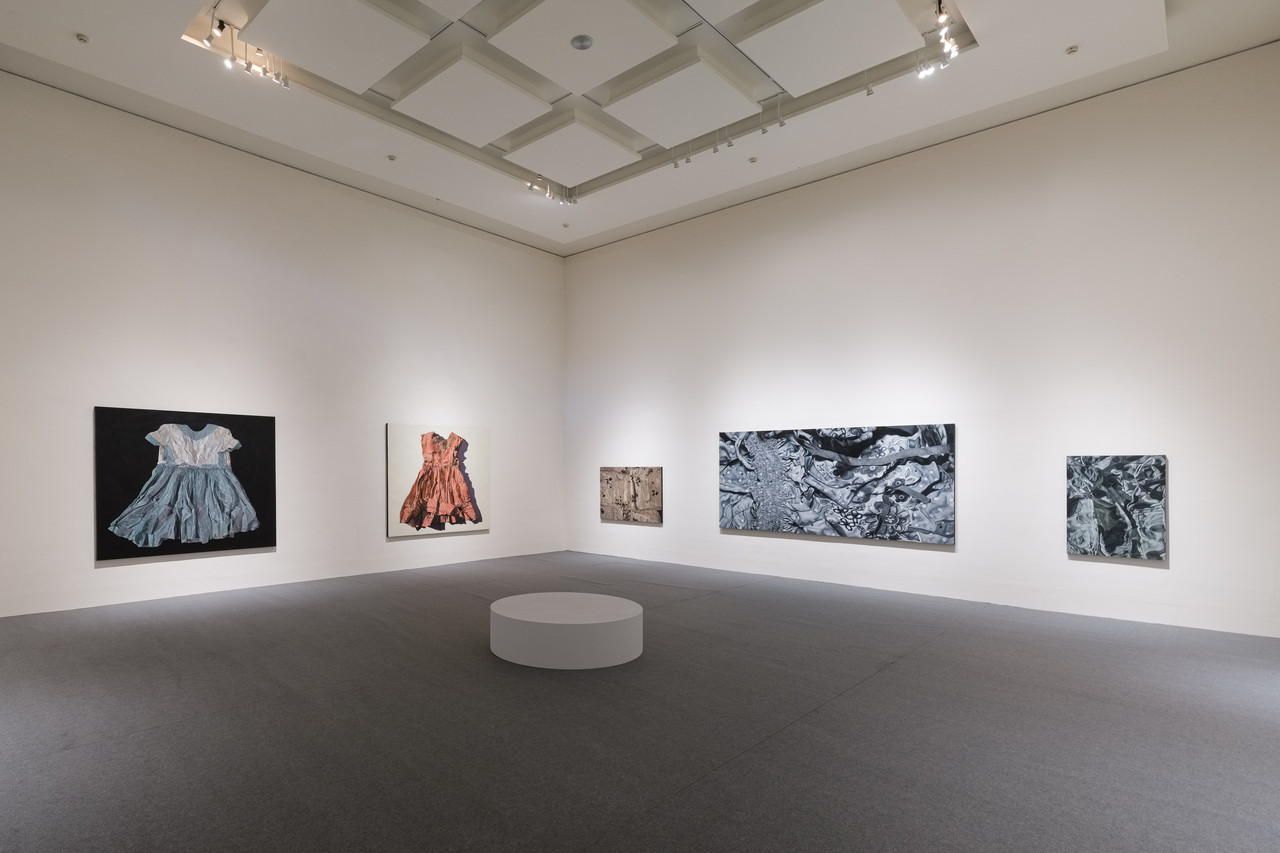 策展人派崔克也說,她在描繪家族長輩過去為孩子特別手工縫製的舊童裝時,刻意放大的衣服比例,形成如特寫般逼視的效果,讓觀眾可從異常清楚的織品細節中,察覺巧心挑選的花色、精心剪裁的樣式、袖口與鈕扣的配色、細細的針腳與壓線;當然更不會錯過滿佈的收納摺痕、縫補又破損的補丁、斑駁脫落的縫線、壓艙發霉的斑點、洗不掉的汙漬與褪色的痕跡。這些衣服,充滿時間性的描寫,彷如「織品的年輪」,隨著四季流轉而增生,擴延出與生命經驗有關的紋理。