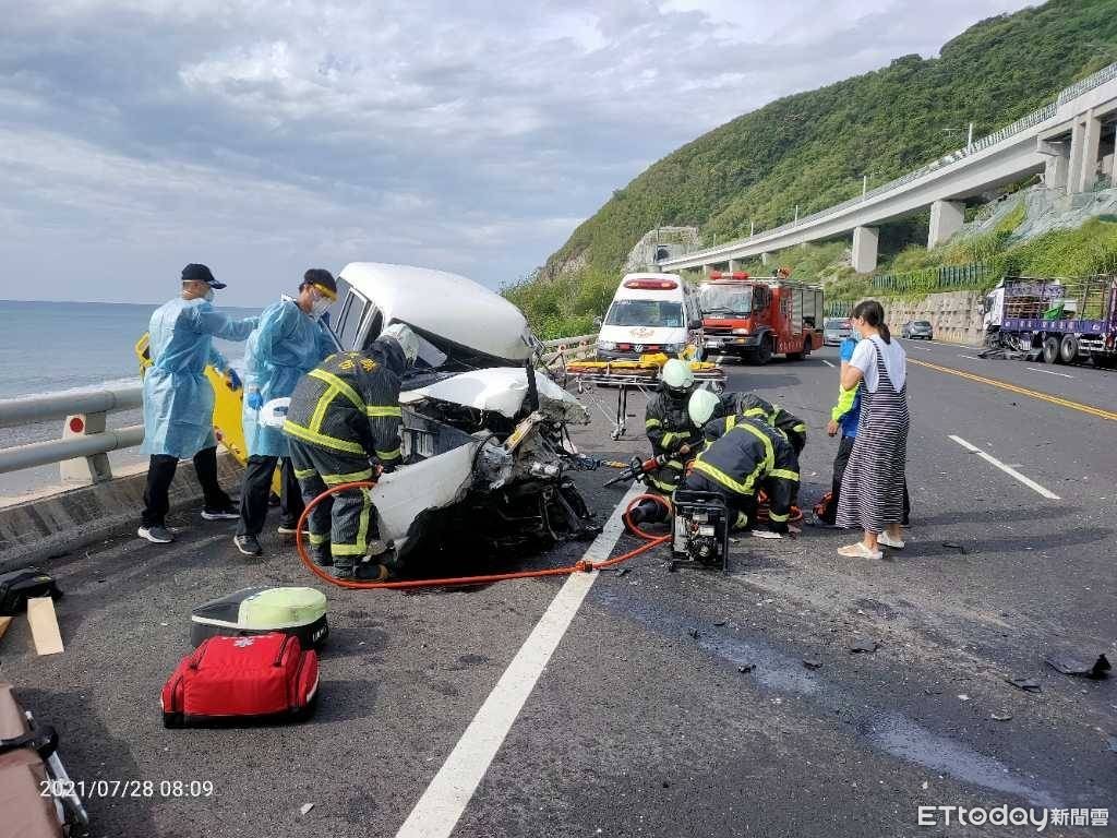 這起事件發生在28日上午8時許,當時一輛廂型車行經上述路段時,與對向大貨車發生碰撞,巨大的撞擊力道造成廂型車嚴重毀損、現場滿是散落的零件、殘骸。警方獲報前往現場時發現,廂型車駕駛、乘客皆受困,趕忙將車體破壞救人,並緊急將人送往醫院急救。