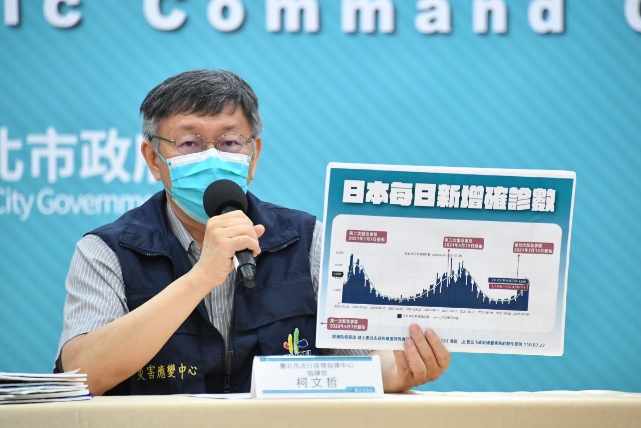 台北市政府今下午3時15分召開防疫記者會,由市長柯文哲、副市長黃珊珊、蔡炳坤共同主持,並對士林某長照機構爆有群聚感染狀況、中央分配給北市疫苗不足、行政院擬發振興「5倍券」、桃園市議會通過普發5000元、總統蔡英文預約施打高端疫苗等議題做回應。