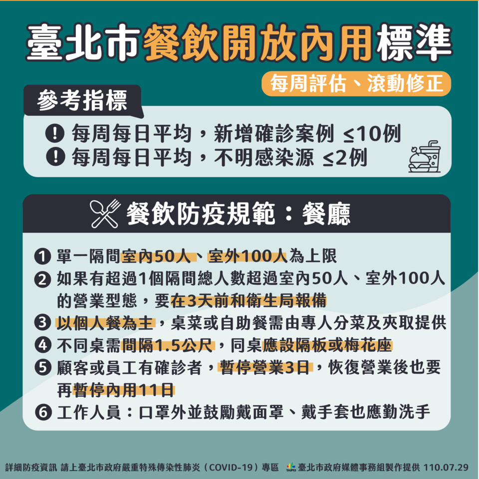 ▼北市公布餐飲解封內用新規定。(圖/北市府提供)