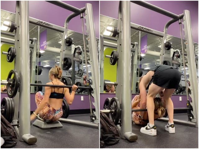▲國外女網友深蹲摔倒,結果男網友上前扶起後進而交往。(圖/翻攝TikTok,下同)