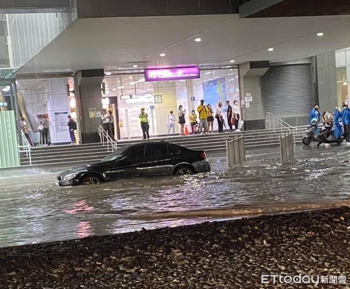 ▲機捷林口長庚醫院A8站發生積水情形,水面逼近輪胎高。(圖/翻攝自林口大家庭)